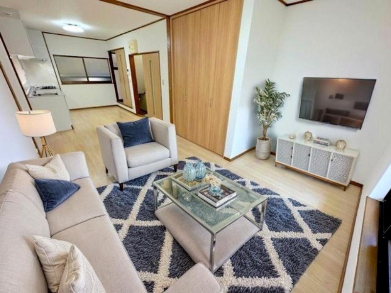 “ご家族で楽しく会話のできる、広々したリビング。3LDKは収納も豊富で部屋数も多いのでストレスフリーな生活を送ることができます。住まいであなたの人生を快適に。